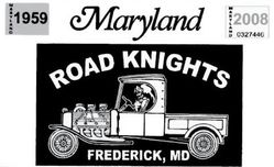 The Road Knights Car Club was established in 1959, thanks to Mr. Johnny Gaither. The club met at B (Reuben Burnett) and G's (Johnny Gaither) Upholstery Shop on All Saints St. in Frederick, MD. Johnny was the president. There were 15 to 20 members at that time. Later the club moved to Gaither's Alley (off of Bentz St.). In 1960, the 75-80 Drag Strip opened and both the Road Knights and Road Angels of Frederick ran the drag strip for the first year. Johnny also was one of the most popular racers at the drag strip, running a 1931 Chevy that was name "Mr. Stitches."